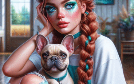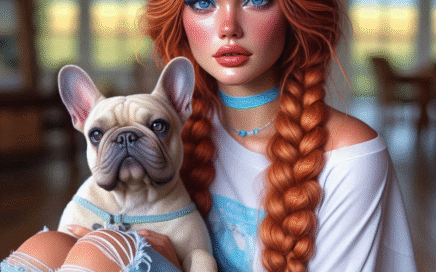 Female With Red Hair And Light Blue Accents With French Bulldog AI Tubes
