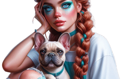 Female With Red Hair And Teal Accents With French Bulldog AI Tubes