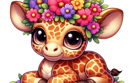 Giraffe With Spring Flowers AI Clipart