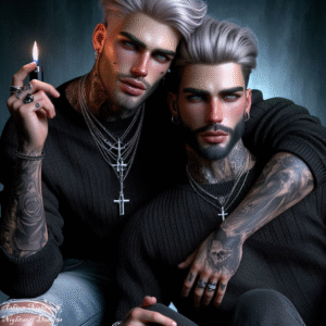 This is a series with a gothic male couple set on a dark romantic atmosphere.  This is for non commercial use without a commercial license A commercial license is available for purchase for each of the prints.