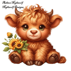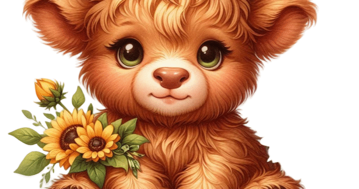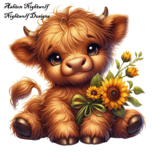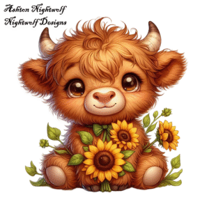 Highland Cow With Sunflowers Clipart Series 1