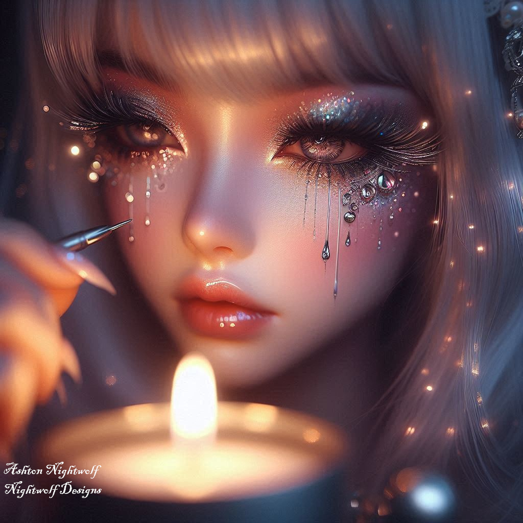 This is a series with a female with glitter, Jewels and a Candle. This captures the ambiance of the lighting casting a soft glow against the jewels and skin. This is for non commercial use without a commercial license A commercial license is available for purchase for each of the prints. 7 in a 8 series.