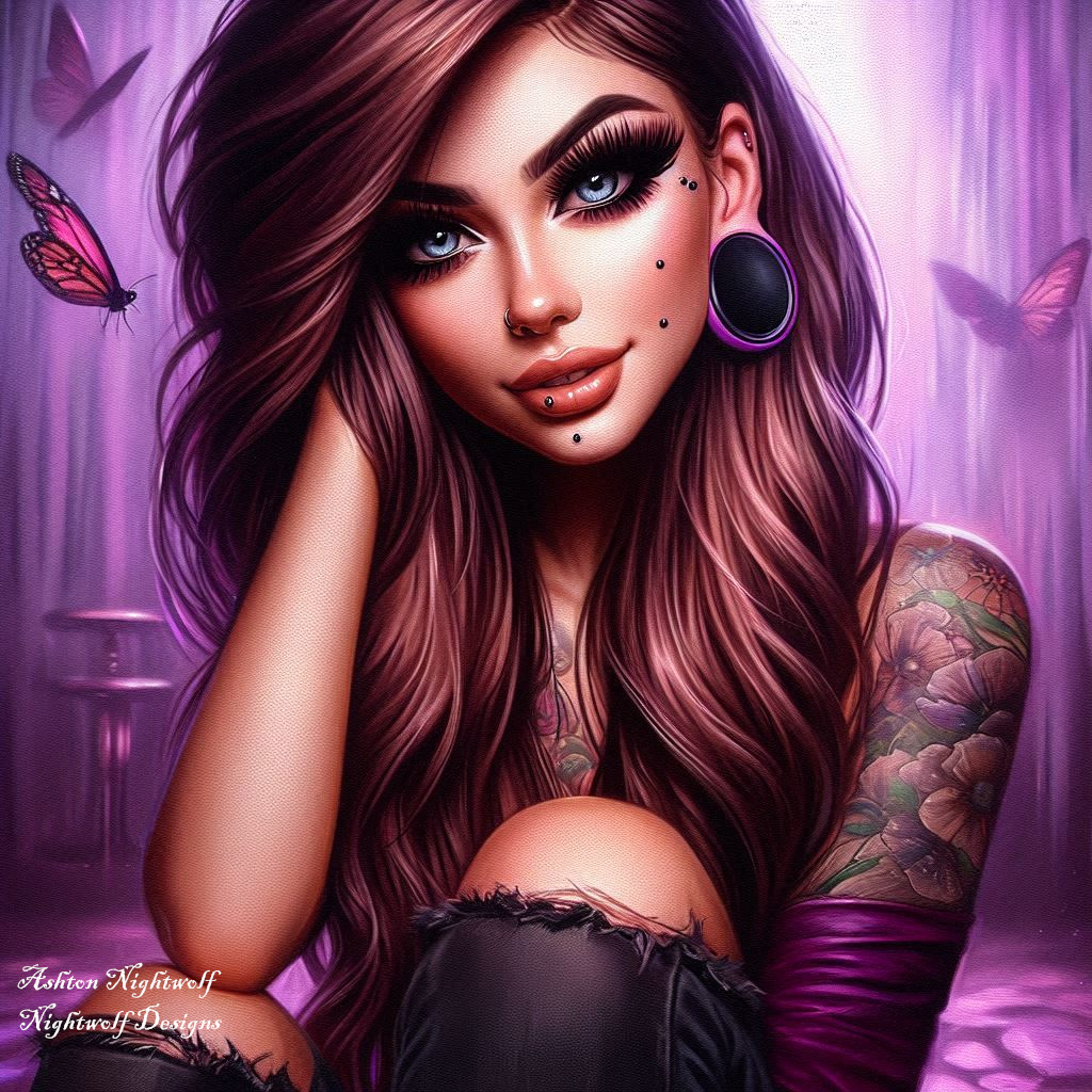 Female With Piercings And Tatts And Purple Butterfly Background AI Artwork 4