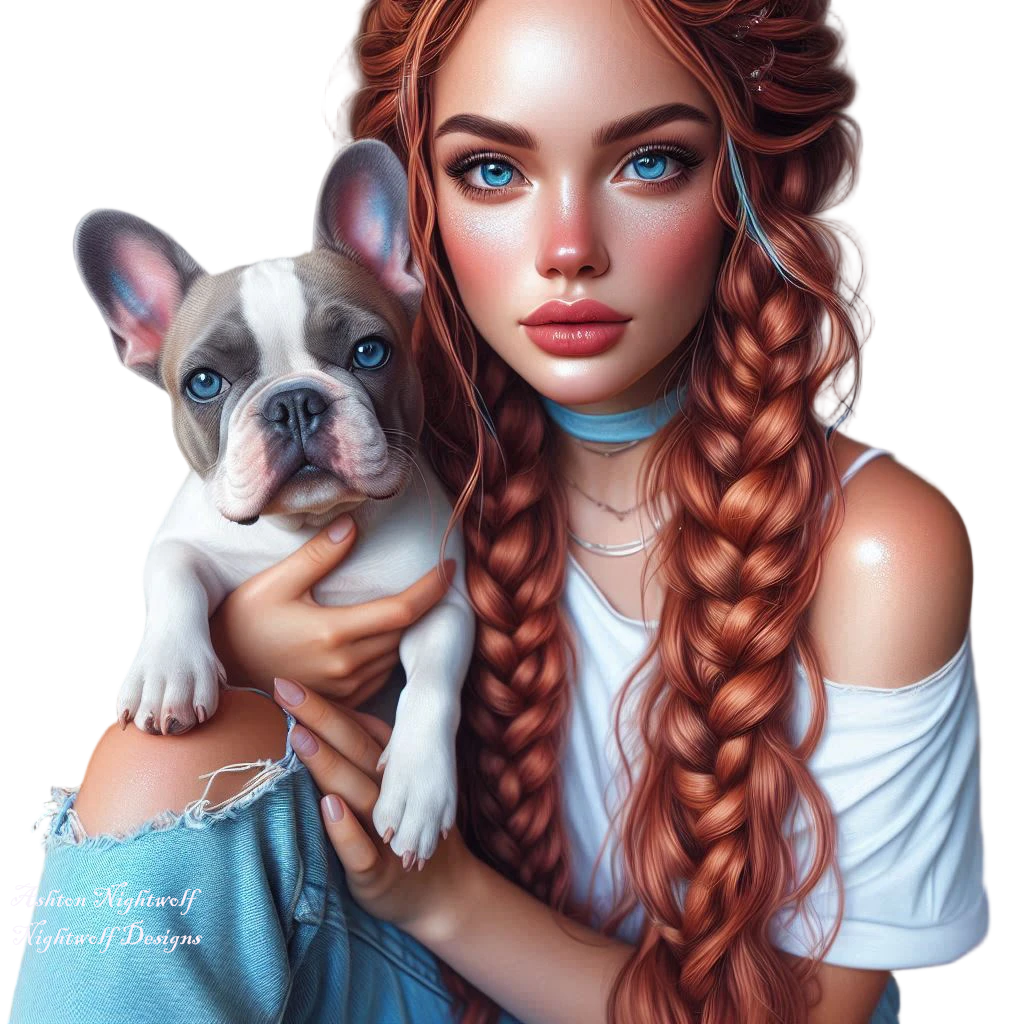 This Series features a Female.  She has red hair and light blue accents.  She is with her French Bulldog. This is a Tube.    This is for non commercial use without a commercial license A commercial license is available for purchase for each of the tubes. Link Back when using my tubes for non commercial use is always required. 1 in a 8 series