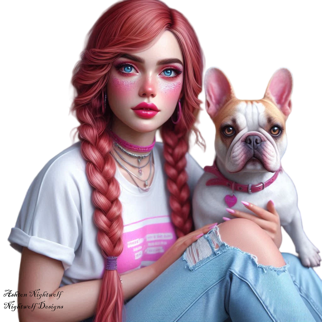 This Series features a Female. She has red hair and pink accents. She is with her French Bulldog. This is a Tube. This is for non commercial use without a commercial license A commercial license is available for purchase for each of the tubes. 7 in a 8 series.
