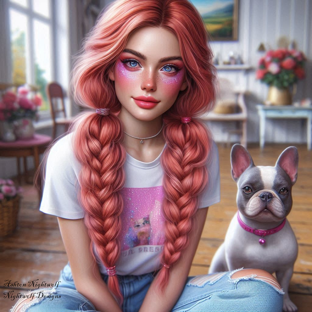This Series features a Female. She has red hair and pink accents. She is with her French Bulldog near a farmhouse setting. This is for non commercial use without a commercial license A commercial license is available for purchase for each of the prints. 2 in a 8 series.