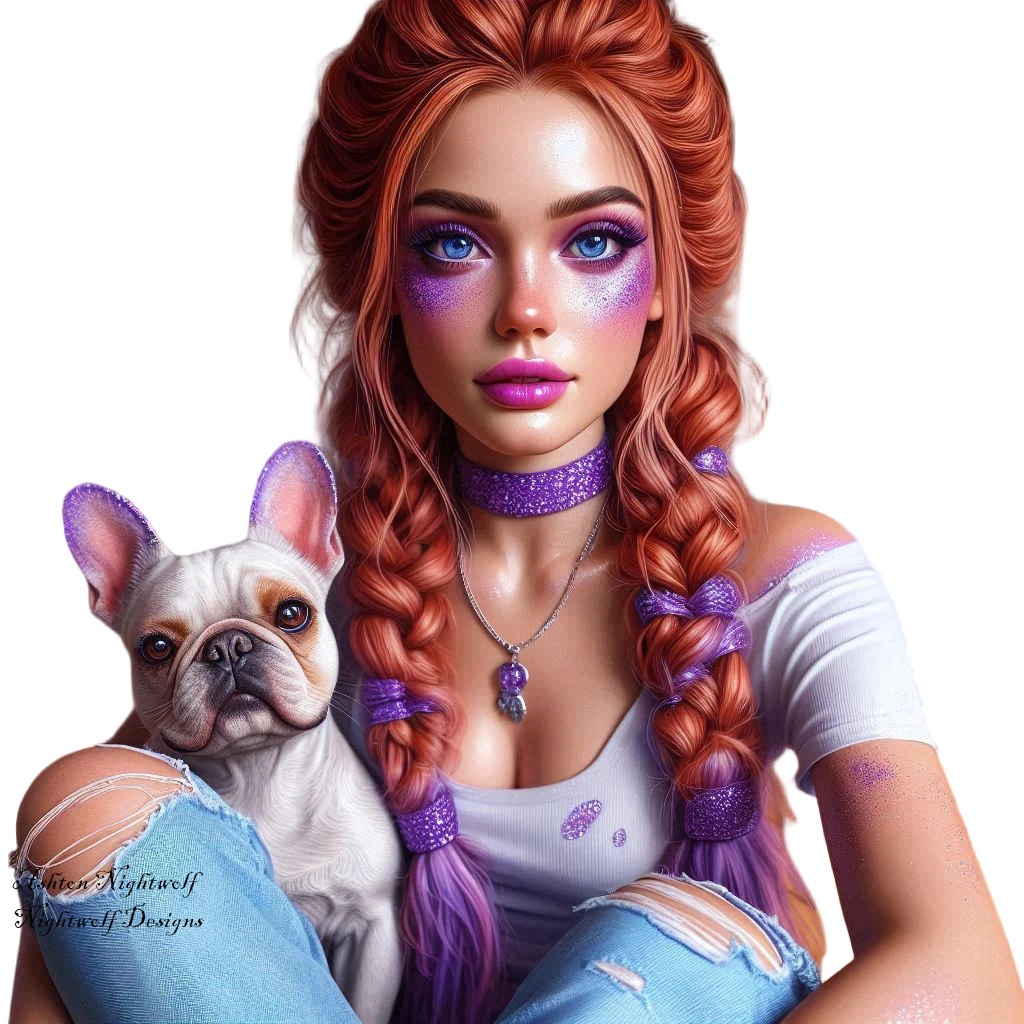 This Series features a Female. She has red hair and purple accents. She is with her French Bulldog. This is a Tube. This is for non commercial use without a commercial license A commercial license is available for purchase for each of the tubes. Link Back when using my tubes for non commercial use is always required. 4 in a 8 series.