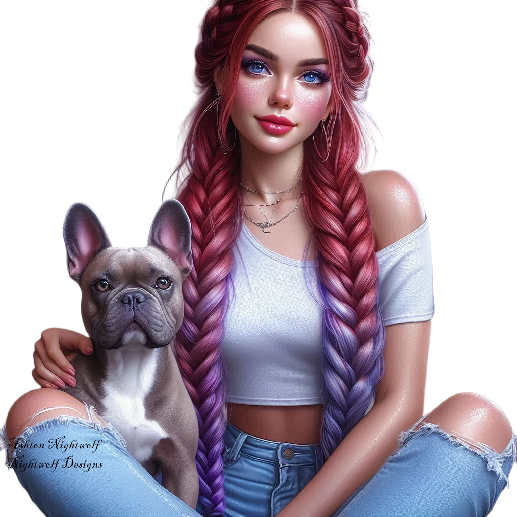 This Series features a Female. She has red hair and purple accents. She is with her French Bulldog. This is a Tube. This is for non commercial use without a commercial license A commercial license is available for purchase for each of the tubes. Link Back when using my tubes for non commercial use is always required. 7 in a 8 series.