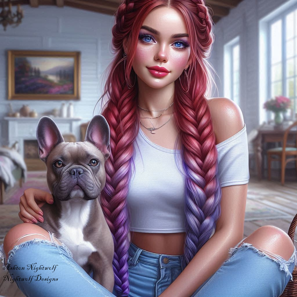 This Series features a Female. She has red hair and purple accents. She is with her French Bulldog near a farmhouse. This is for non commercial use without a commercial license A commercial license is available for purchase for each of the prints. 7 in a 8 series.