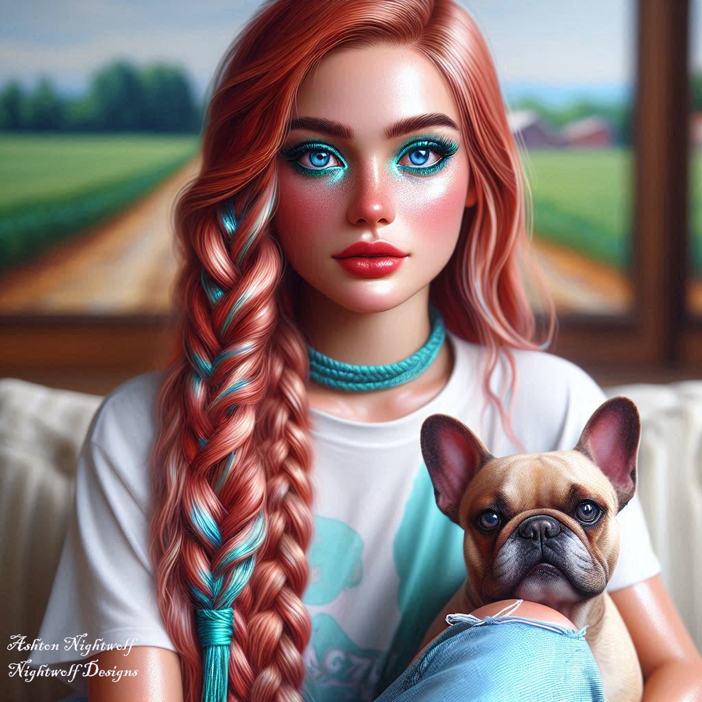 This Series features a Female. She has red hair and teal accents. She is with her French Bulldog. This is for non commercial use without a commercial license A commercial license is available for purchase for each of the prints. 8 of a 8 series.