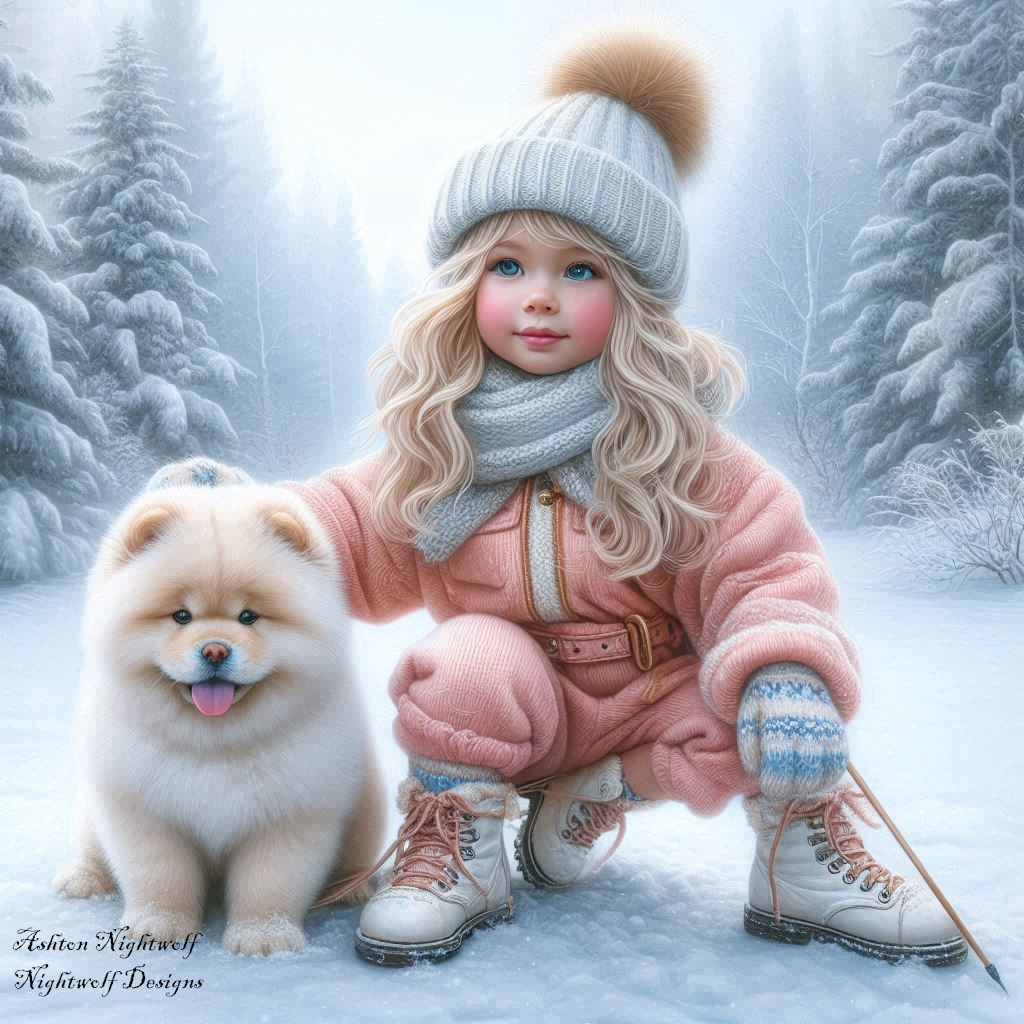 This Series features a girl with her chow puppy against a wonderful winter background.  This is for non commercial use without a commercial license A commercial license is available for purchase for each of the prints. 4 in a 8 series.
